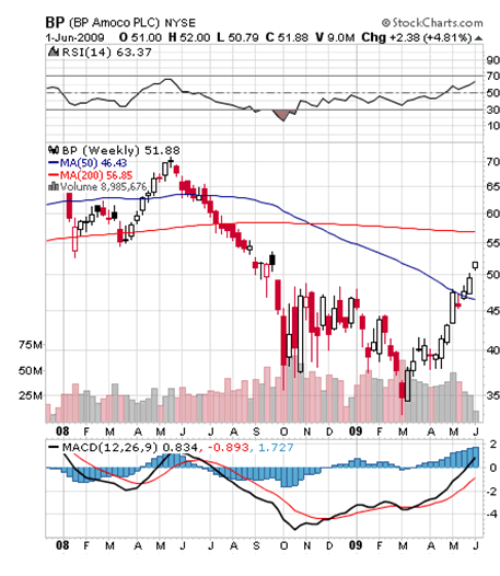 Since we recommended BP in our last quarterly brief it has risen by 25%. However despite this run-up we continue to recommend holding this fabulous equity. With a short term momentum recovery picking up, demand for oil is bound to continue to push prices North.