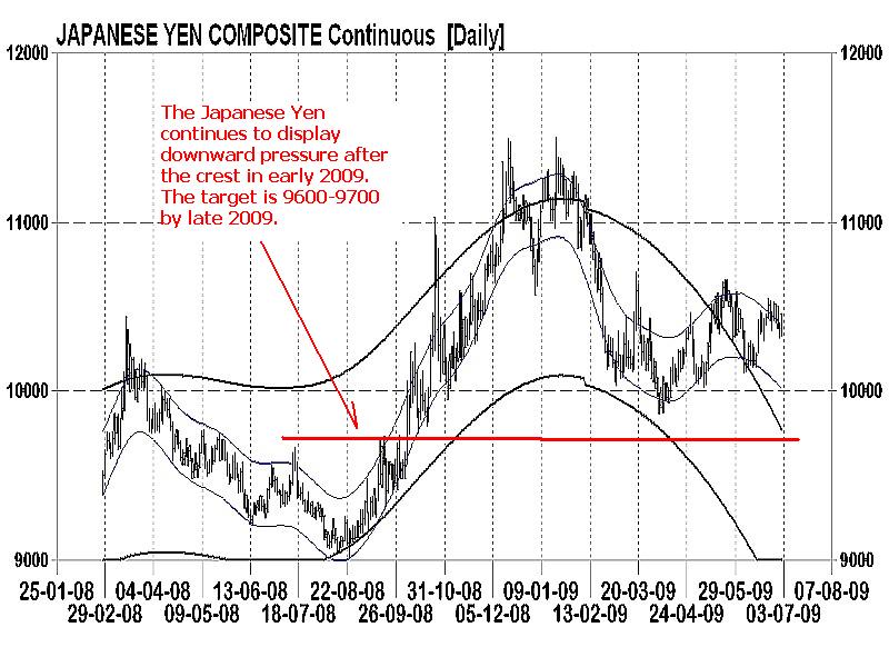 Bottom line: The tight linking of the trading patterns between the Japanese Yen and the Dow Jones World Stock Index points to additional base building for global equities. As models for the Yen indicate a downside target of 9600-9700 by late 2009, this movement is anticipated to be positive for stocks.