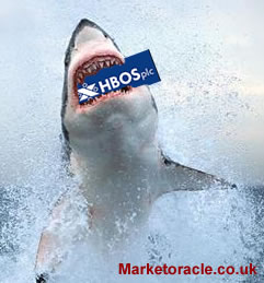 - HBOS taken over by Lloyds TSB for £12 billion amidst a stock price crash of 66% in 3 days. The shotgun wedding was to prevent another Northern Rock style collapse and nationalisation, precisely the possibility warned of on Monday. My analysis called for restrictions on short-selling to give distressed financial institutions room to breath.