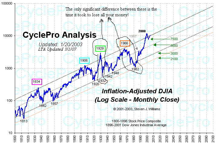 Next, an inflation-adjusted chart of those same bear markets (courtesy of Steven J. Williams at CyclePro):