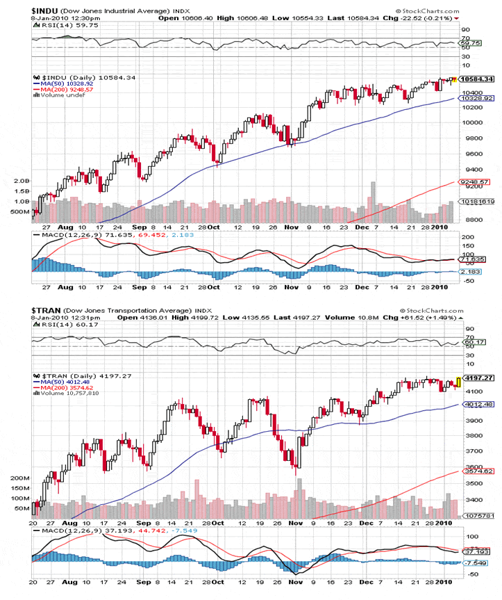 As always the market must try to discount such uncertainty but given the mix I see above average risk in the martket given the weak underlying fundamentals.Therefore I am happy to advise clients to hold onto their fabulous 2009 gains and await a clearer economic tablet or a powerful technical indicator.