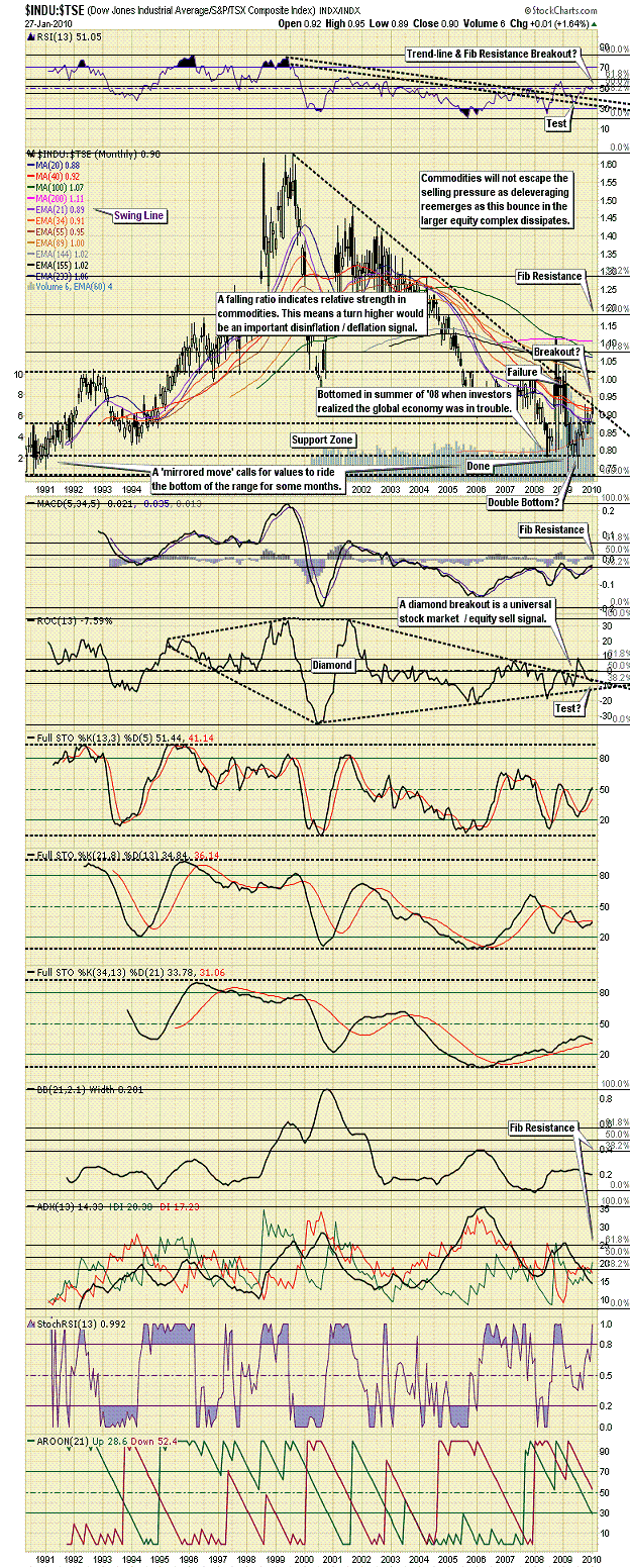 But the thing that is most disconcerting in this regard, and that which has me bearishly predisposed when the majority of others are not, is the fact that the Dow / TSE (Toronto Stock Exchange) Ratio is poised to finally breakout, which means commodity speculators and those looking to Canadian markets as a safe haven are about to get a rude awakening. Expect to see Canadian banks get into noticeable trouble this time around, with mergers the likely result as the government is compelled to rationalize the already dependent sector as the wheels come off the global economy. This will shake the very foundation of the global economy / banking system as the uniformed think Canadian banks are untouchable when the opposite is true. So, watch for a breakout on the Dow / TSE Ratio to mark acceleration in the larger global deleveraging process, which should transpire any day now. (See Figure 3)