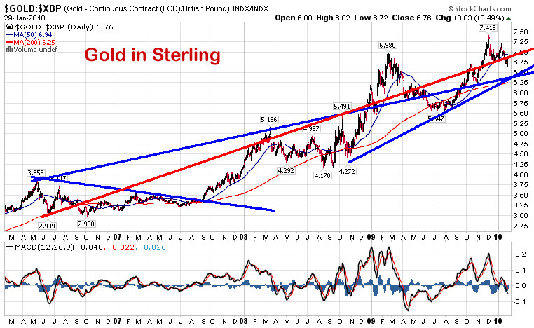 My earlier analysis of a positive trend for the USD clearly implies given the inter market relationship between a two for a weaker trend for Gold. However the risk is that amidst the next phase of the global financial crisis as the bankrupt banks have far from recovered, the next stage of the banking crisis accompanied by recognised inflationary panic measures of money printing which devalues all fiat currencies could give a lift to gold.