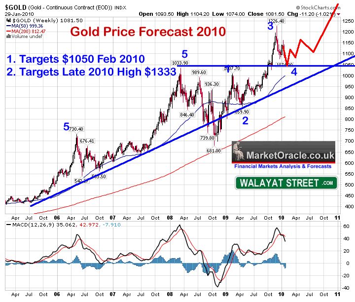 Gold has had a stellar run of late, which recently saw Gold pushing to new all time highs on a near daily basis which has galvanised wider mainstream press attention to the precious metal with many gold bugs revising targets ever higher into loftier goals such as $2000 and even $4000+. Gold is one of the most popular asset classes both sought after by readers and written about by market commentators, and one of the most emailed query as to when will I update my original gold analysis of 22nd January 2009 which concluded during mid 2009, therefore this analysis seeks to project the Gold Price trend well into 2010.