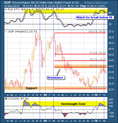 A lot will depend not only on the direction of gold, but on the direction of the dollar and the overall stock market as well. This is why the gold stocks are much riskier than physical: the dollar, gold, and the overall stock market need to be trending in sync (dollar down – physical gold & stock market up) for the gold stocks to shine. This is not the easiest set-up to maintain, but when it does, it’s a thing of beauty (from last week’s 3/12/10 report).