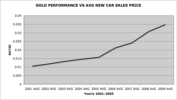 In 2001, it took 95 ounces of gold to buy the same car you can purchase today for just 25.5 ounces, according to the National Automobile Dealers Association.