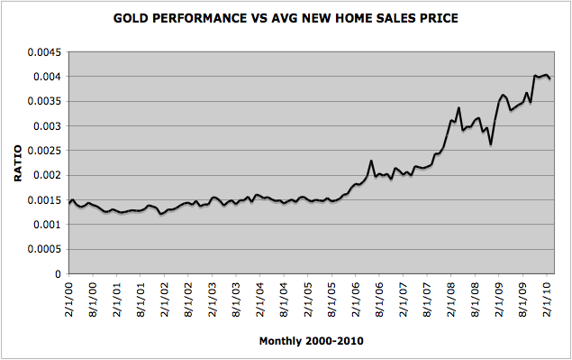Despite the incredible housing bubble in the middle part of the decade, gold consistently rose against home values. In 2000, it took 705 ounces of gold to buy the same house you can purchase today for just 253 ounces.