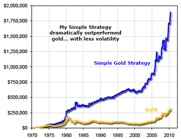 Not only did this Simple Strategy dramatically outperform the price of gold, it did so with substantially less volatility...