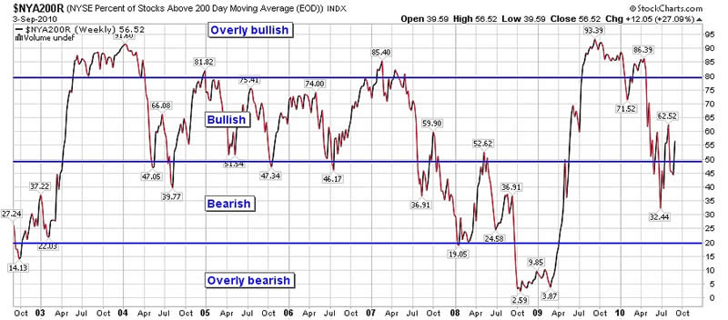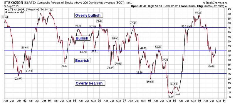 Following the August 15, 2010 market update titled "Supportive tone remains fragile and volatile", market measures have eased slightly to the positive side as September begins to unfold. In the August 15 article, both the NYSE and TSX were in the bearish zone with a majority of their holds trending lower.