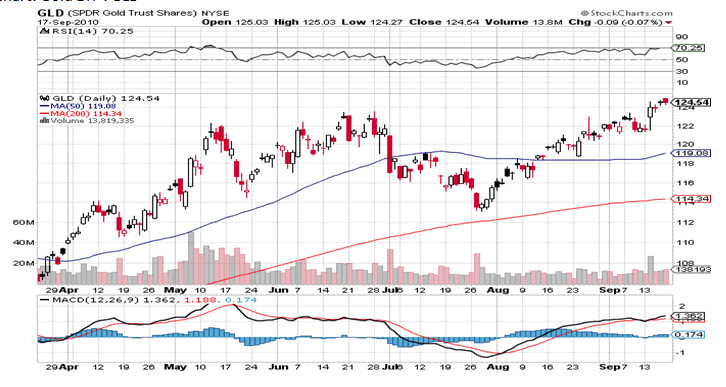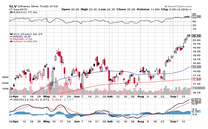 For the market to breakout from the current price band earnings results next month need to substantially beat expectations. With high unemployment, rising inflation and a weak dollar I am not sure this will transpire but we shall wait and see. Momentum-wise gold and silver ETF’s (GLD and SLV respectively) continue to trade well as do emerging markets and small caps. The movement of gold and silver is probably an indication that a second round of quantitative easing is almost a certainty thus ensuring that dollar weakness is set to continue.