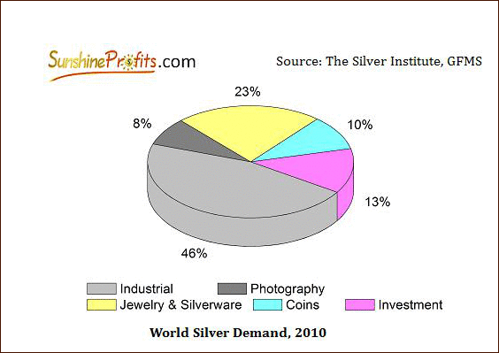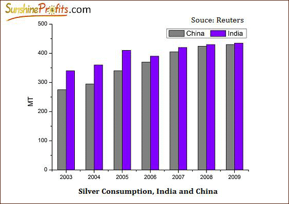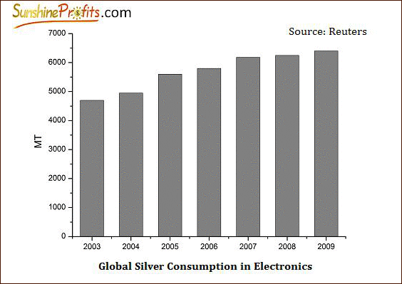 Silver is mostly used as components in highly sophisticated areas of technology or jewelry. Reliability and performance are the primary reasons why precious metals are used in electronic devices. As the electronics sector has been inching towards increased sophistication in the past few years, silver demand has been on the rise. The growth of the electronics industry in the BRIC nations is also encouraging for silver demand. Big markets with relatively lower penetration levels (and hence potential growth areas), such as India and China, are certainly the talking point in most investment articles making a case for silver.