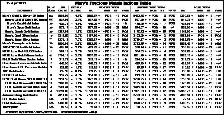 Merv’s Precious Metals Indices Table