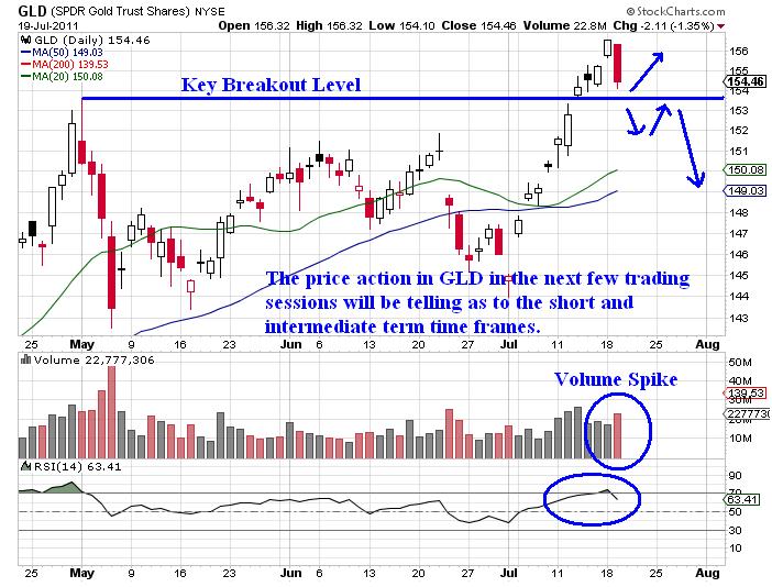 If price tests the breakout level and support holds we could see a move to the $160/share price level play out. However, if the price of GLD falls below the key breakout level the daily chart will have carved out a failed breakout and lower prices will be imminent. For short term gold traders caution should be warranted.