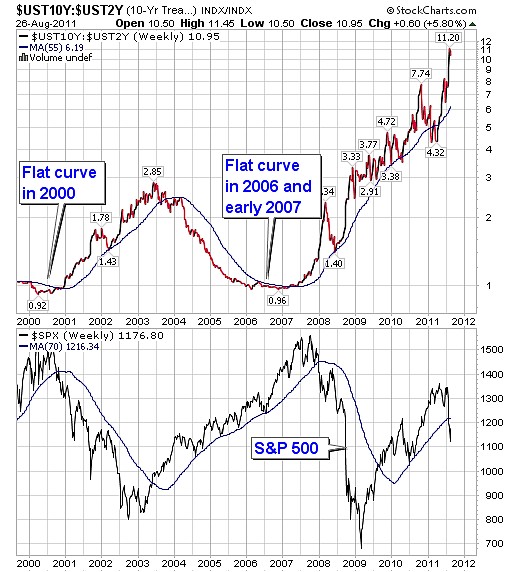 The steepening yield curve in the bond market and the nine months of falling GDP suggests the stock market decline is likely nearing the end verses just beginning to decline.