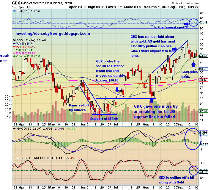 I believe that GDX has given us a nice secondary buy point – one we are not likely to see again. If you do not yet have a position in GDX I suggest you open a small position here and wait because gold may still pull back a bit more. If you can buy this ETF for $62.00 or less it’s a great buy and I will be adding to my position if it pulls back to that level.