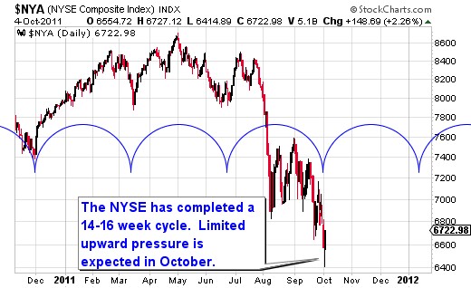 Following the September 22, 2011 Market Minute titled "Nearing the low" today's market action suggests that the expected trough has likely occurred.