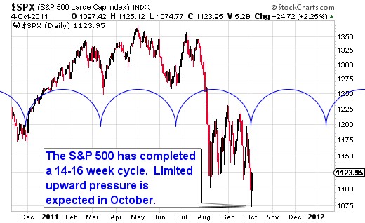 Over the past two months, models have been indicating the low for the 14-16 week cycle should arrive from late September to early October. The strong reversal on the 4th and today in global markets would correspond with that pattern.