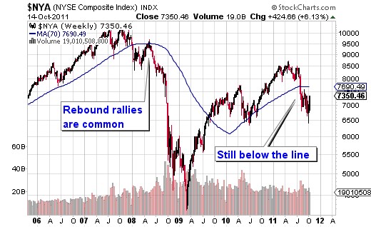 Broader global markets have rallied substantially since the start of the new cycle. The NYSE Composite has advanced 14% from October 4th (Chart 1), the EURO 100 has climbed over 11% and many Asian indexes have jumped 12%-17%. But is this the start of a new bull market or just a rebound rally within a longer bear trend?