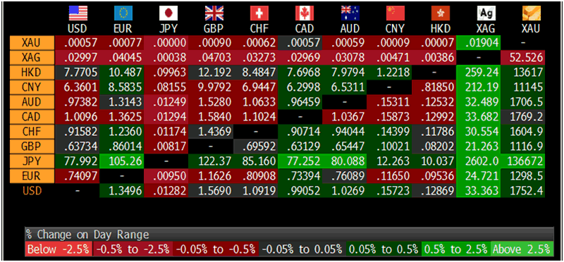 Gold is trading at USD 1,752.90, EUR 1,298.30, GBP 1,116.10, CHF 1,604, JPY 136,700 and AUD 1,706.4 per ounce.