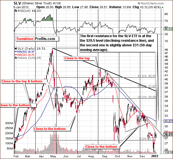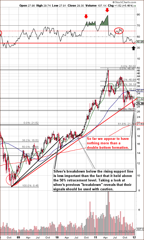 To see what is likely to happen in the precious metals market in the nearest future, let's begin the technical part with the analysis of silver (charts courtesy by http://stockcharts.com.)