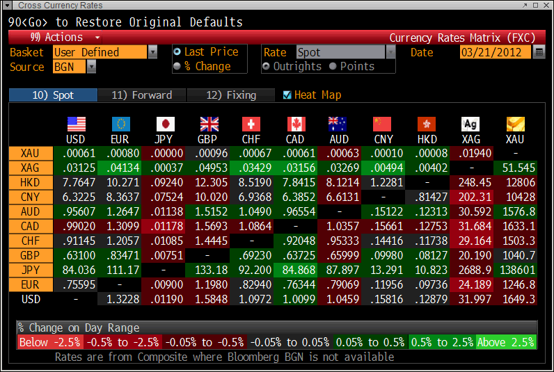 Cross Currency Table – (Bloomberg)