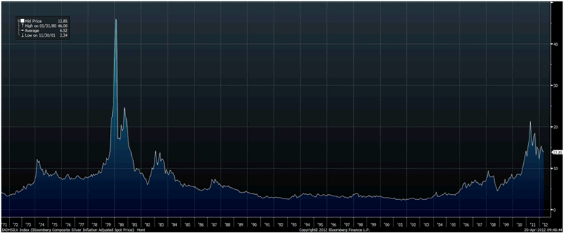 Silver in USD 1971 – 2012 (Bloomberg Inflation Adjusted Index)