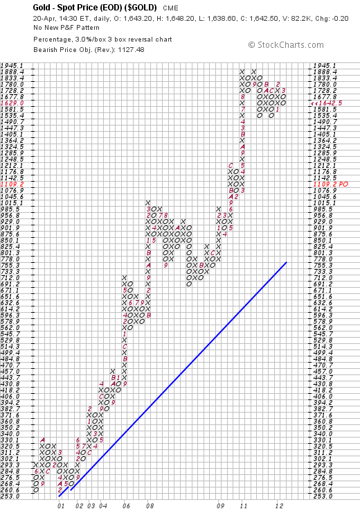 Chart 6 below – the 3% X 3 box reversal chart of the gold price – is pointing an “eventual” destination of $1109