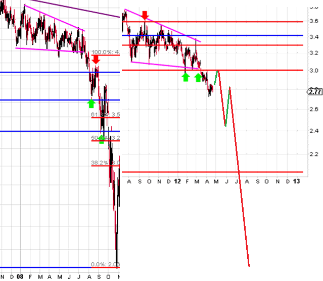 I have often compared the underperformance of the HUI index relative to Gold to the situation in 2008, right before the “big crash”.