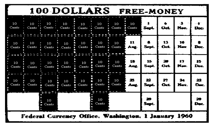 hoarding, Gisell propounded that for money to be valid it should require attachment of a stamp,