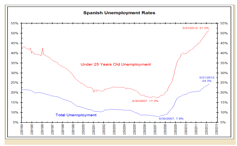 A picture tells a thousand words. The chart above shows just how grave the situation in Spain is. Europe is in crisis and the euro