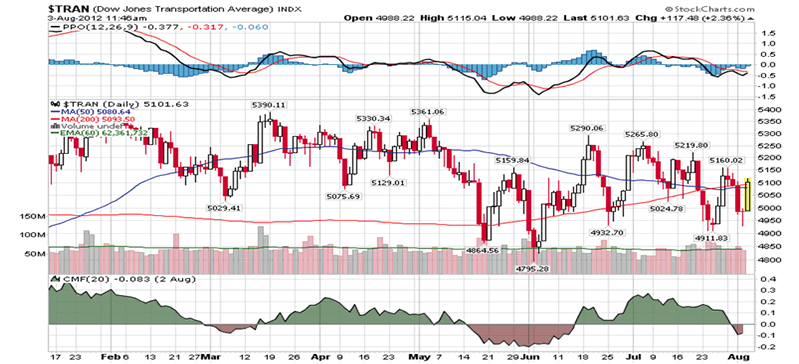 The metrics of the American indicate to me that she is on the cusp of a boom once the Euro Zone issue is finally resolved. American companies are the most profitable, competitive and resourceful in the world. In valuation terms they and the stock market had gone nowhere since 2000, particularly when you allow for inflation. In a field of instability the American dollar is by far the most favored currency on the globe and its democratic/political system the envy of the world. So what's holding America back? What is the catalyst that will trigger this long awaited boom? In my humble opinion the fuse will be lit when, following a Euro Zone resolution (either way), the over 30 year bond bull market finally gasps its last breath. Then and only then will the stage be set for a boom in equities. We are nearly there but not quite. Yes this scenario will involve the raising of interest rates but rates cannot remain at zero forever. When FED policy changes it will be timed perfectly be under no mistake about it. All its ducks will be in a row and when it moves the effect of the American stock market will be substantial. This demise in the bond bull market will have the potential to create a wealth effect to match the Millenium tech boom. This in turn will influence the American real estate market, making a new secondary wealth strata. This real estate recovery will in turn recalibrate the value of American banks. This recalibration will place these financial corporations in pole position to take advantage of their less favorably placed European and Asian cousins. In other words I can see American banking institutions "buying up" bankrupt European banks, corporations and state assets. How long will this scenario take to play out? I am not sure but I do perceive the American establishment putting the pieces in place. I believe the City of London has been forced into a political cul-de-sac as a result of the horrendous LIBOR scandal. This will leave Wall Street the pre-eminent financial power house in the world and the dollar the undisputed reserve currency. All this augers well for Uncle Sam. I reckon for America the best has yet to come. Keep your powder dry and await the technical buy signals which will be breakout high on Industrials, Transports, Real Estate and American Financials. I repeat we are not there yet. I reckon following the September 2012 earnings season the imminent balloting in the American presidential elections will be an interesting time followed by what I reckon will be a watershed year - 2013.