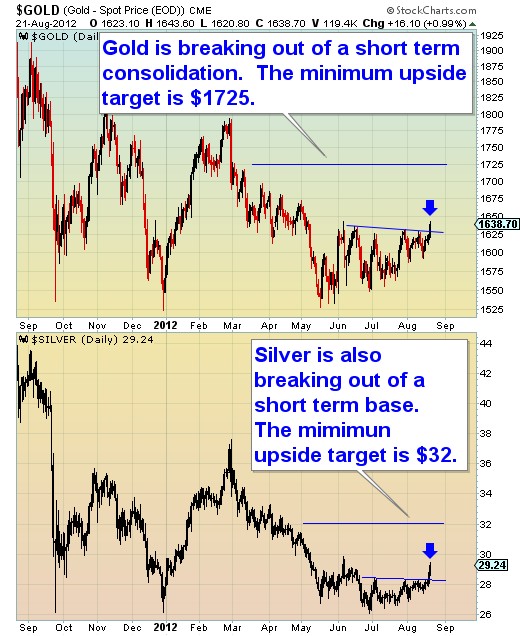 After almost three months of consolidating, gold and silver have broken out of their bases. Though they continue to be well below their 2011 peaks, this seasonal move is expected to produce about a 10% advance.