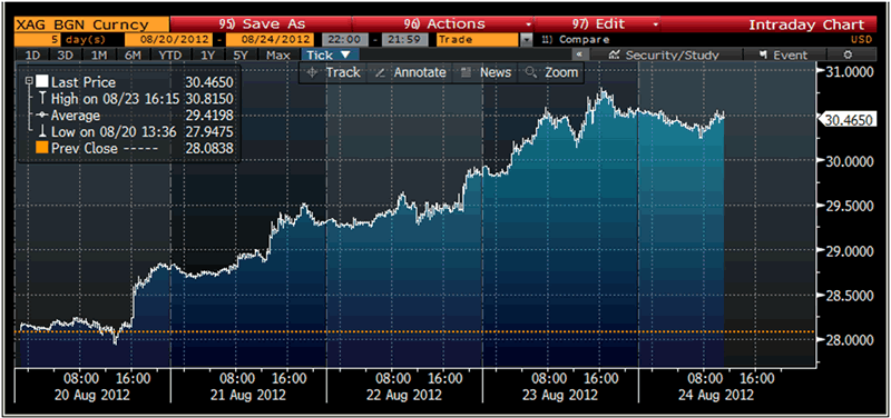 All of the recent focus has been on the Fed and the will it or won’t it engage in QE3 saga. Many of us said long ago that some form of QE on a significant scale is inevitable. However, it is important to realise that the Fed is just one factor driving precious metals higher.