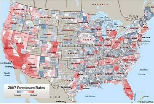 The increasing mortgage foreclosures (Chart 3) certainly would suggest this financial crises is not over. Over 2/3rds of the U.S. are battling with runaway housing defaults in all price ranges. Only the narrow band of states in the centre appear untouched for the moment.