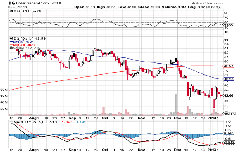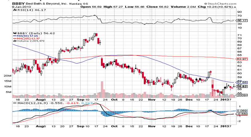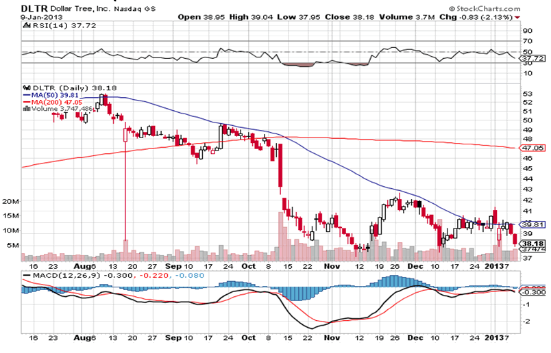 Distribution is where fund managers, in anticipation of a future stock market decline, sell into rally highs thus diminishing their power. Distribution is indicative of an anticipated bear market. To support this thesis I continue to attach the following charts: AAPL. BIDU, BBBY, MSFT, BWLD, DLTR, MNST and DG: