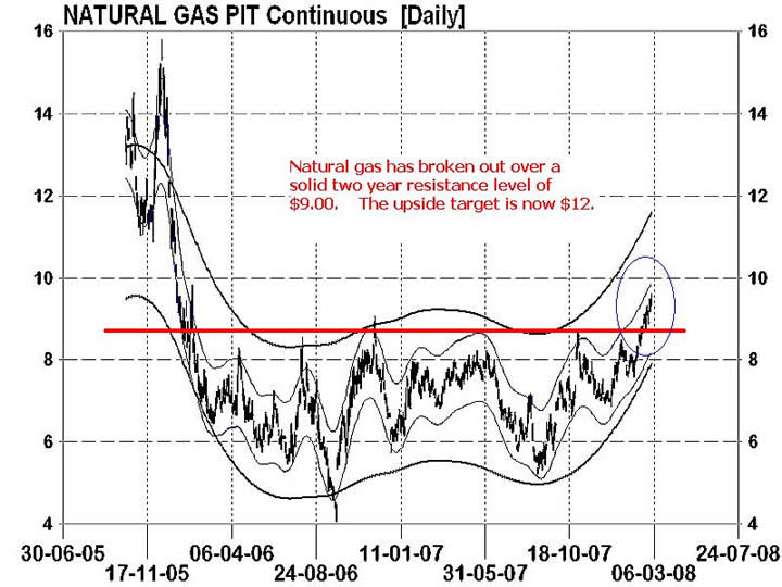 Technical models are indicating a positive turn for natural gas, especially now that the commodity has crossed the $9.00 resistance zone. Models are suggesting that $9.00 will now be the support line on any price pullbacks and a target of $12 can be anticipated for 2008.