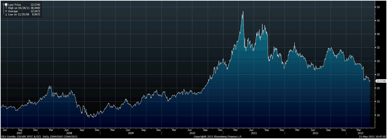 Spot Silver in USD, 2007-2013 – (Bloomberg)