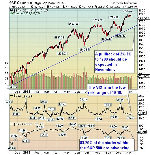 Bottom Line: The bull market in the S&P 500 is expected to continue into Q1 2014. The U.S. index is, however, anticipated to pullback in November down to 1700 (a 2.0%-2.5% decline) before advancing again.