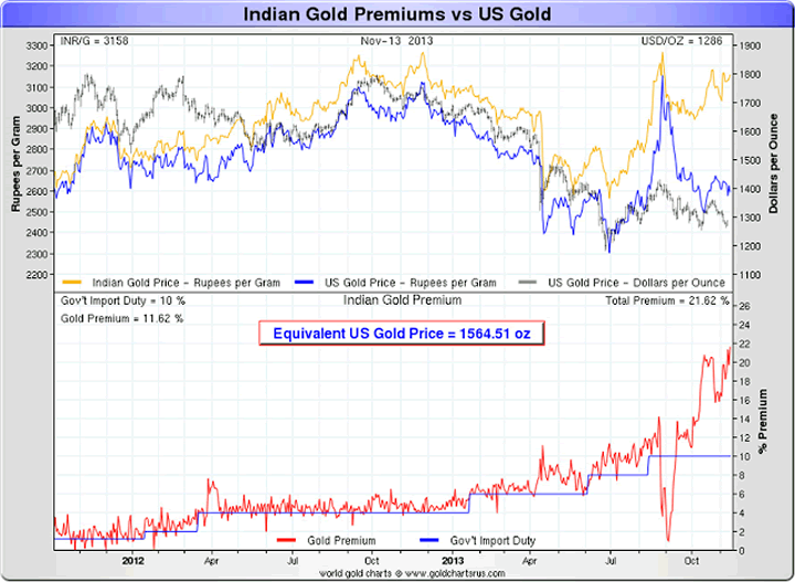 When the Reserve Bank of India and the government tried to staunch gold imports by increasing duties and limiting supply in order to help their western central bank counterparts, who were deeply embarrassed by their inability to return Germany's gold, the experiment in currency controls had the effect of making the premiums paid for actual gold jump to 21.6% over western paper 'spot' prices.