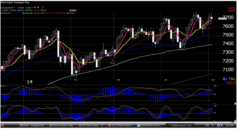 The Dow Transports and Dow Industrials both are trending upward with higher highs and higher lows and both indices are in congruence. (Though it must be noted that the Transports Index is significantly stronger than the Industrials). In addition The VIX remains at historically low levels and the Advance/Decline line shows no sign of any technical stress what-so-ever.