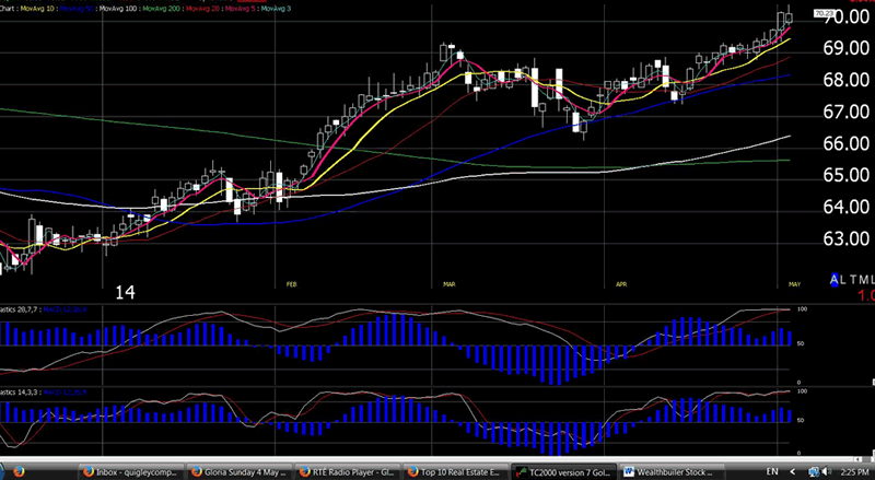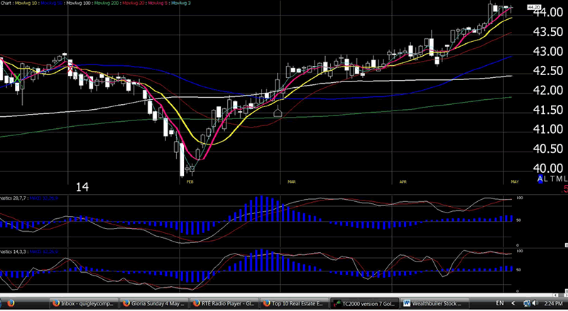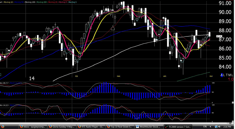 In the general “blogosphere” for the past 2-3 months there has been numerous stories heralding the “collapse” of the American real estate market. While these articles make for interesting reading they are somewhat sensational. The market confidence in this sector remains strong as can be observed by reviewing the Dow Jones Real Estate Index Fund ETF: IYR below. This year this ETF is up 11% and technically the trend is powerful. I think this is one of the reasons the FED is continuing with the QE tapering policy. I think Janet Yellen and her team are genuinely confident the recovery has legs. Of course should this strength become too robust it will call into question the continued low interest rate environment.