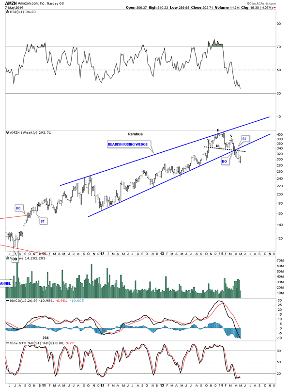 The first chart is a weekly look at AZMN that is showing a very well defined H&S top complete with a breakout and backtest.