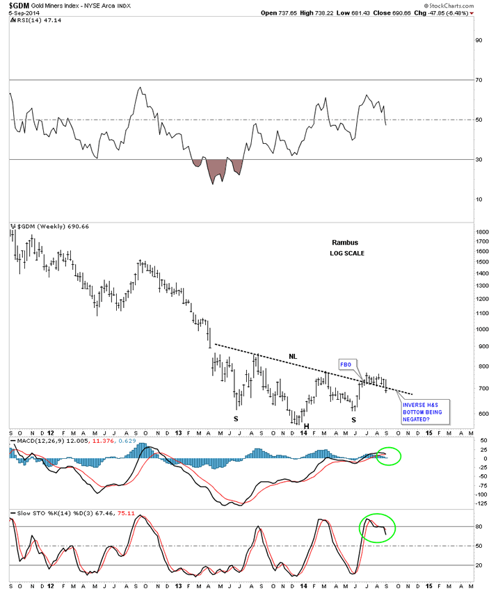 Another reason last weeks price action was so important is because GDM has broken down below the neckline of that potential inverse H&S bottom that has kept us in limbo for the last two months. It's looking more likely that the inverse H&S bottom maybe negated if we see more weakness coming into the big picture over the next week or two. If GDM was embarking on a new bull run it should be showing more strength instead of weakness in here which it's not.
