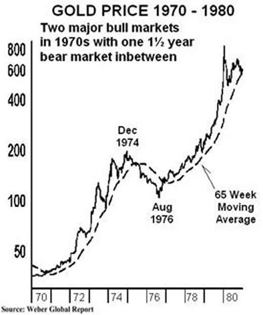 The bankers had to act quickly and they did. In December 1974, the US intervened. Between December 1974 and August 1976, the price of gold plunged, falling from $197.50 to $103.50, a 47 % decline.
