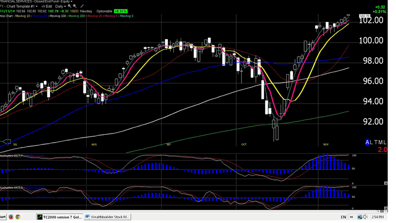 Despite the recent run up in the markets since the 17th. of October when you look at the S & P 500, The Dow Industrials and the NASDAQ there is no evidence to be seen of real momentum breakdown.
