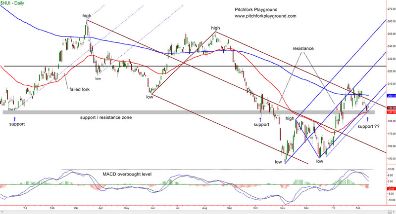 On a shorter time frame there was an upwards sloping fork in early 2014 (chart below) but that fork failed fairly quickly and price resumed its downtrend.
