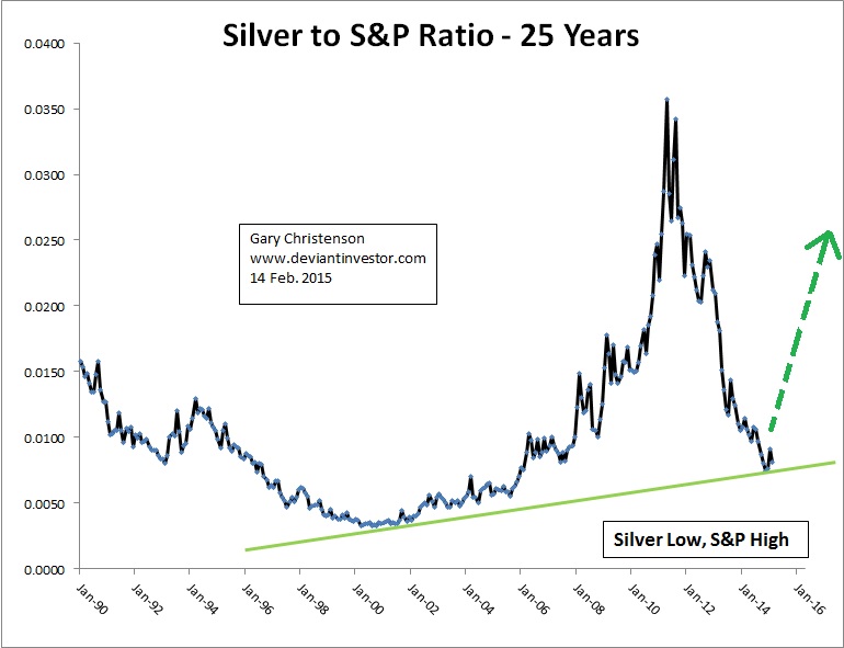 - The ratio has fallen hard because the S&P has been levitated by QE and silver prices collapsed, especially after the April 2013 meeting in the White House between a group of bankers and the current US President.