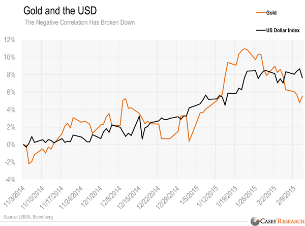 Even gold’s negative correlation with the dollar has bucked its trend.