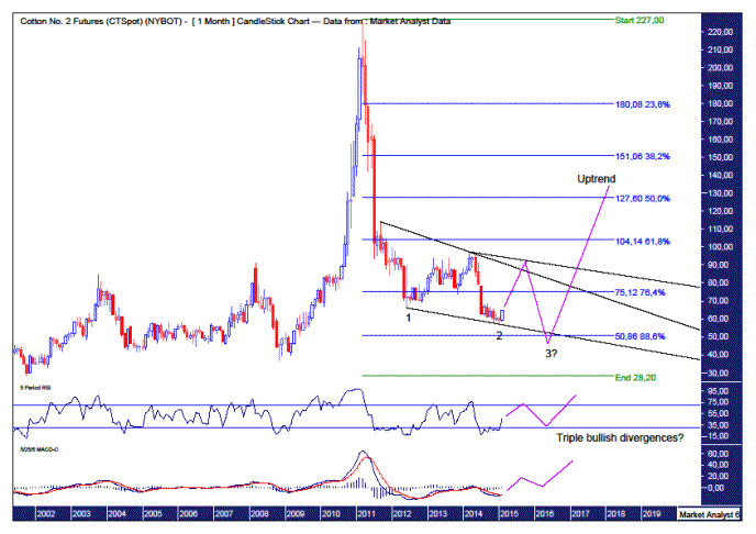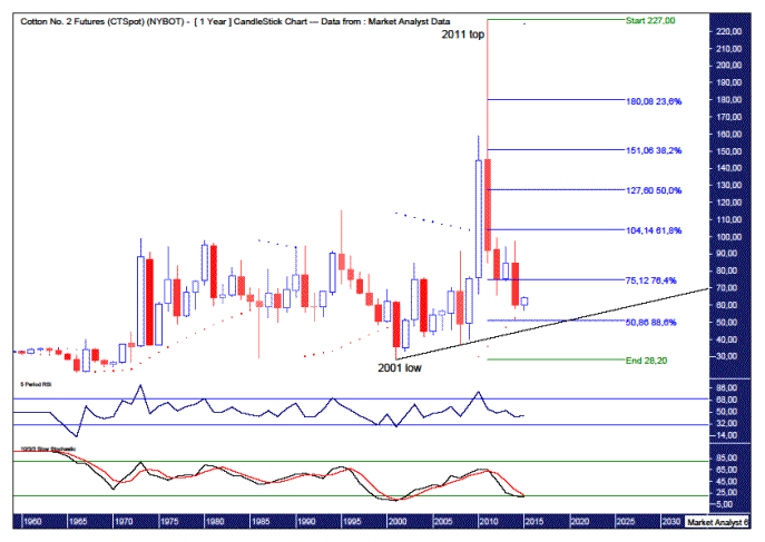 The cotton price has experienced a shellacking over recent years so is there any relief in sight for cotton growers going forward? Let’s find out taking a top down approach to the technicals beginning with the yearly chart.
