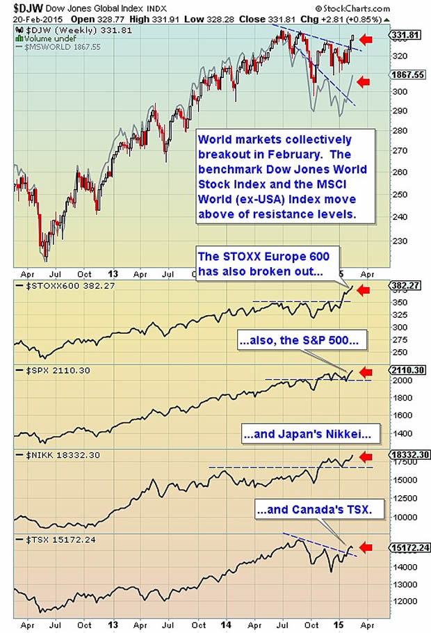 After over six months of concern that the 6-year old world bull market was coming to an end, a collective upside breakout has developed.